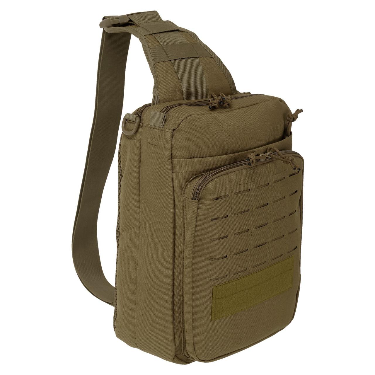 Сумка-слінг SP-Sport ZK-273 має габаритні розміри 33x23x10 см та місткість до 8 літрів, що дозволяє зручно розмістити всі необхідні предмети. Вона виконана з міцного та довговічного матеріалу – нейлону Oxford 900D та поліестеру, забезпечуючи надійний захист вмісту сумки від зовнішніх впливів. Оснащена системою MOLLE, яка дозволяє легко та безпечно закріплювати додаткові аксесуари та спорядження. Це робить сумку-слінг ще більш функціональною та зручною у використанні.
