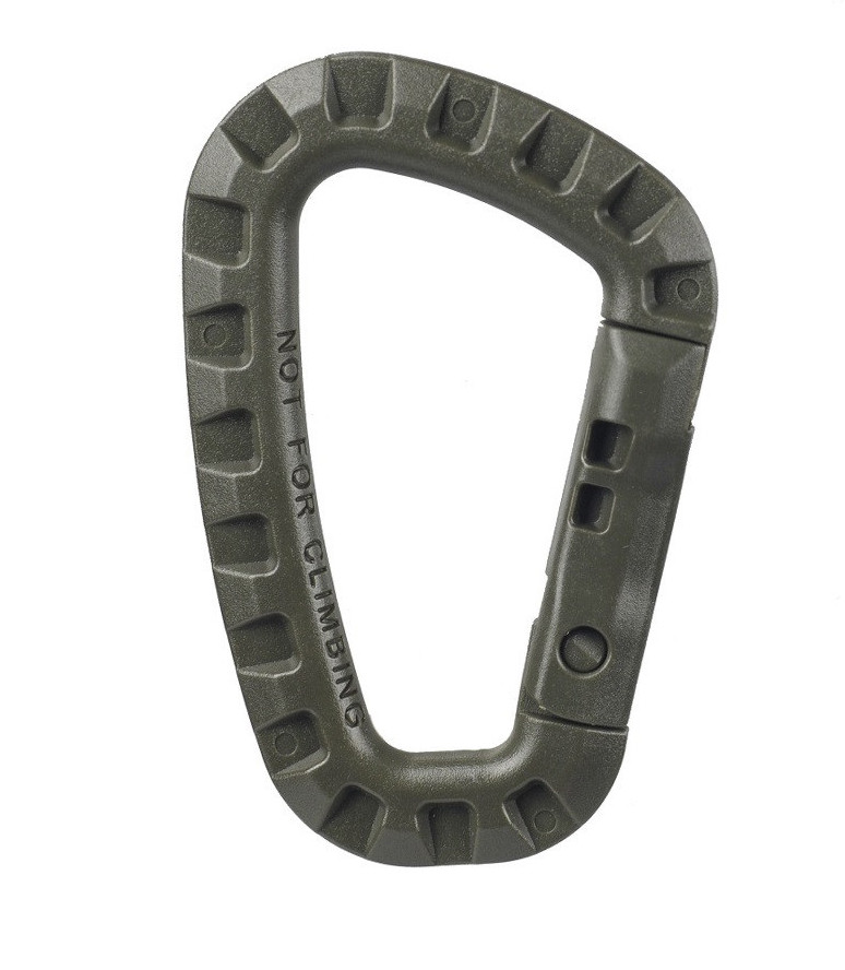M-Tac карабін пластиковий призначений для закріплення необхідного вам спорядження на розвантажувальному жилеті, поясі або іншому місці. Карабін із якісного ABS-пластику. Довжина карабіна становить 8,5 сантиметра. Габарити: 85 х 60 мм Матеріал: ABS-пластик Особливості: Карабін не призначений для альпінізму та інших видів спорту, пов'язаних із високим навантаженням.